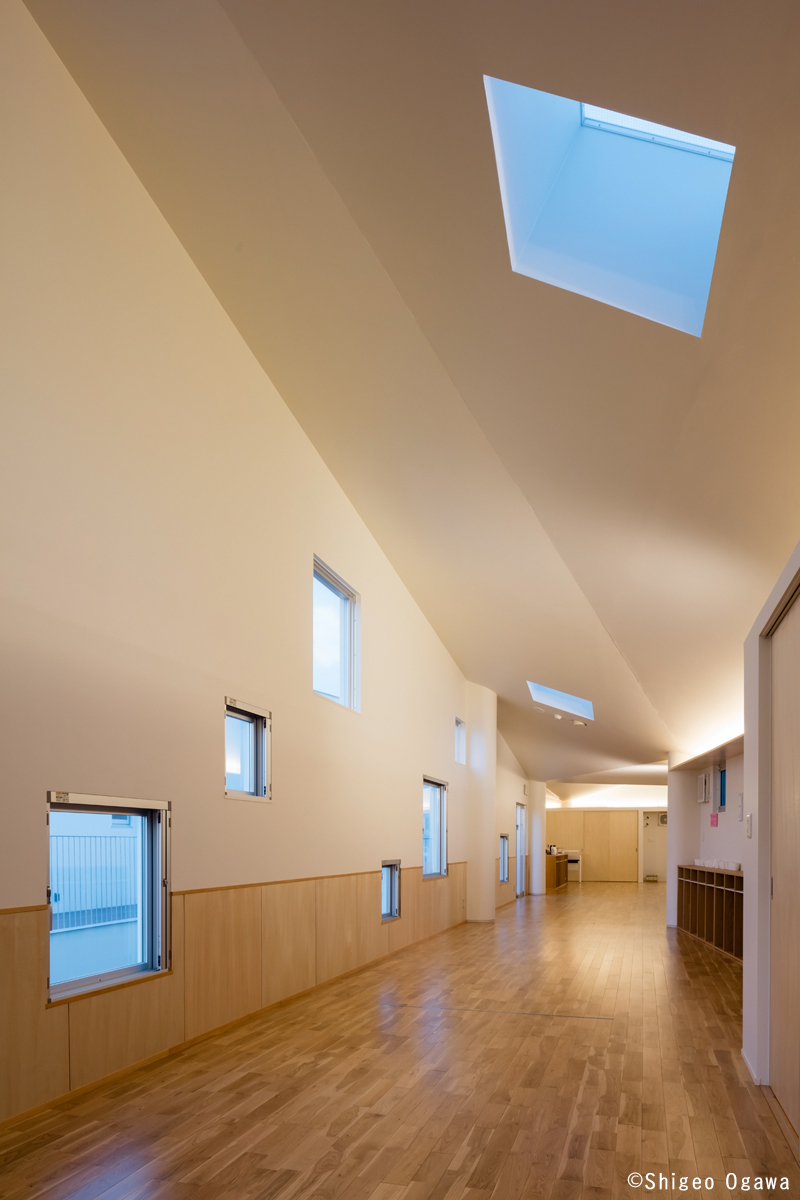 子どもたちが調理風景を見て楽しめるよう、調理室は透明のサッシでオープンなつくりになっています。「食」を通じて、子どもたちの健康や丈夫なカラダと豊かなこころの育みを支え、子どもたちと食べることの楽しさや喜びを共有し、毎日愛情たっぷりのごはんを提供しています。
